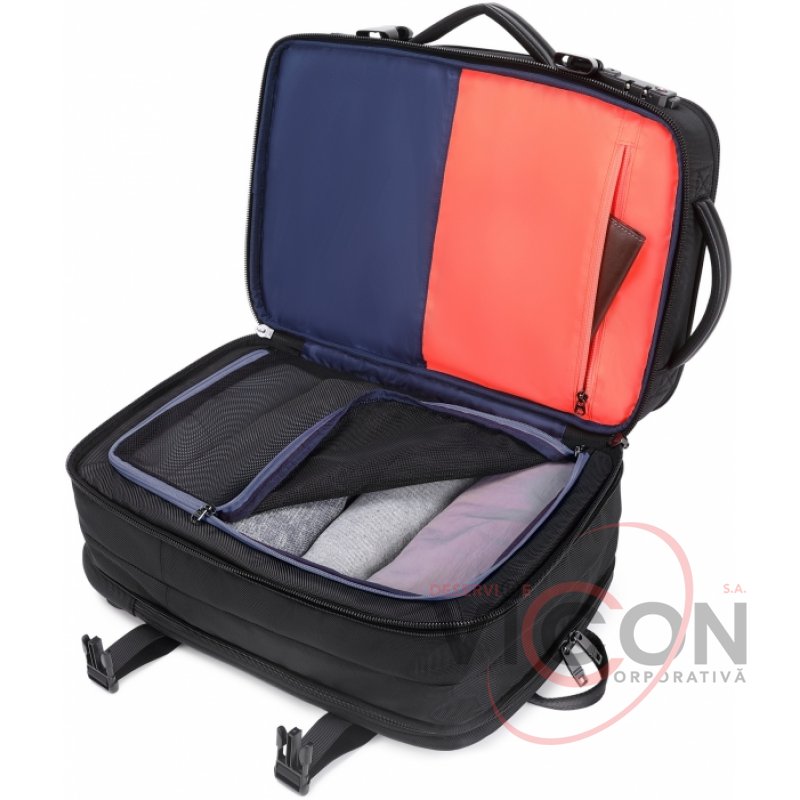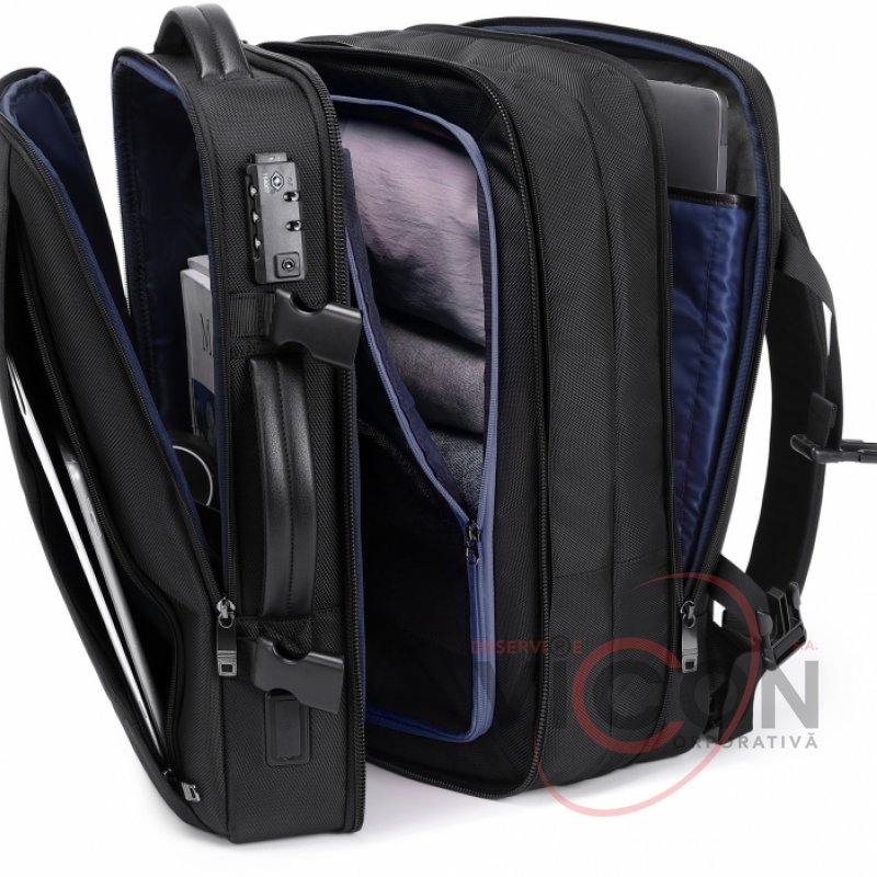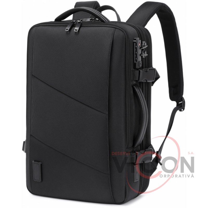 Размер: 45*28*14 см. Ткань – водоотталкивающий нейлон, микрофибра. Laptop-карман. USB-порт. Потайной задний карман. Кодовый замок. 3 основных отделения, 1 внешний карман.