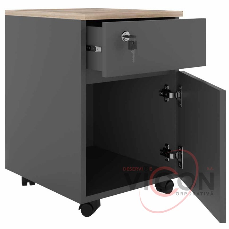 - Rollbox с верхним ящиком с замком и шкафчиком. В комплекте два ключа.