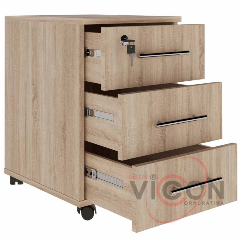 - Rollbox с 3 ящиками и закрытием верхнего ящика. В комплекте два ключа.