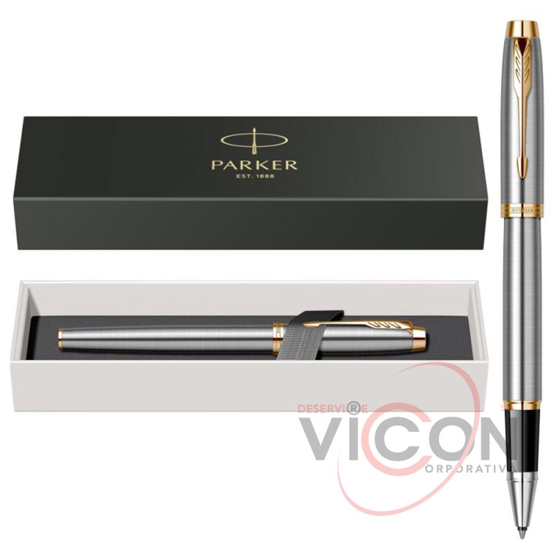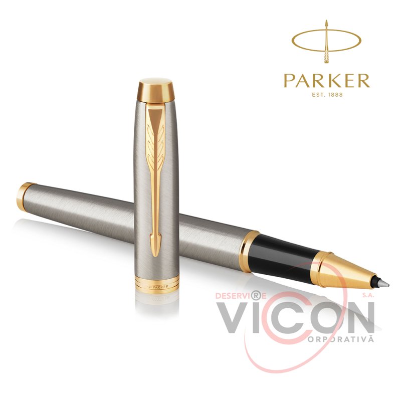 Модель 2017 года, ручка-роллер Parker IM Matte Brushed Metal GT из обновленной коллекции IM. Основные особенности нового дизайна: новый зажим-стрела с тремя широкими перьями, укороченная форма торца на колпачке, широкое кольцо на колпачке теперь состоит из 3 соединенных вместе колец, на среднем выполнена гравировка логотипа PARKER. Корпус ручки-роллера выполнен из отшлифованного металла с круговой полировкой, отдельные элементы дизайна из латуни с позолотой, зона захвата изготовлена из блестящего пластика. Ручка поставляется в престижной подарочной коробке с обновленным дизайном, в комплекте также присутствует один черный стержень и гарантийный талон.