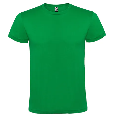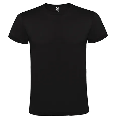 Футболка Roly Atomic 150 с короткими рукавами и двойным круглым воротником. Усиленная лента на воротнике и плечевых швах, трубчатый материал.