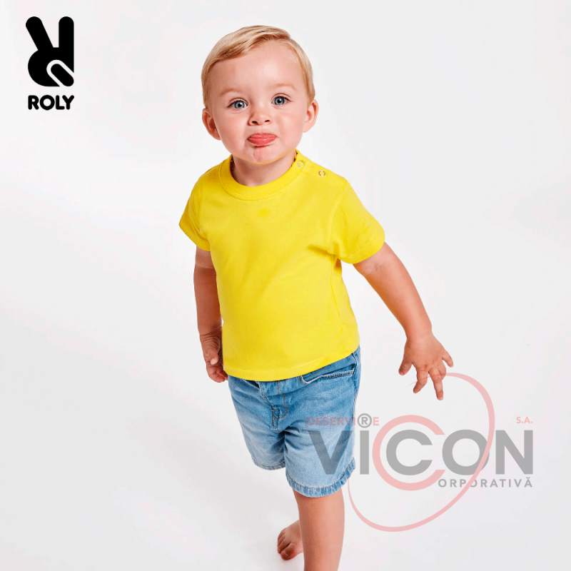 Футболка с короткими рукавами специально для малышей, из гладкой ткани с компактной отделкой. Круглый воротник и застежка на плече со скобами, размеры от 6 месяцев до 18 месяцев.