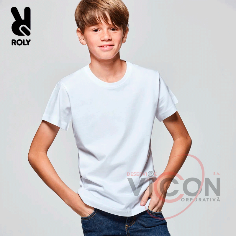 Футболка Roly Beagle с короткими рукавами с двойным круглым воротником с эластаном, изготовленная из трубчатого материала. Шов воротника обработан армированной лентой.