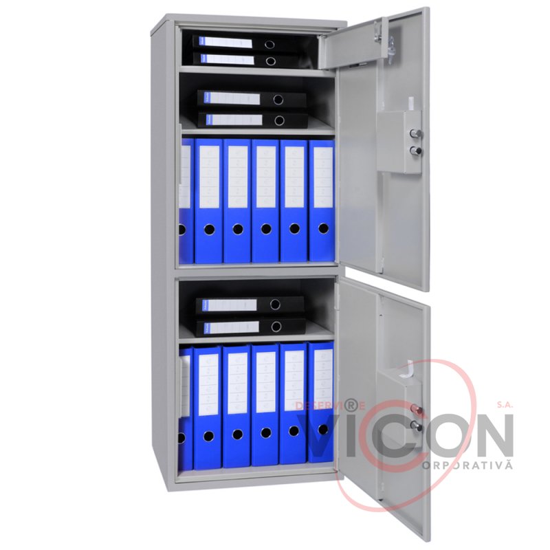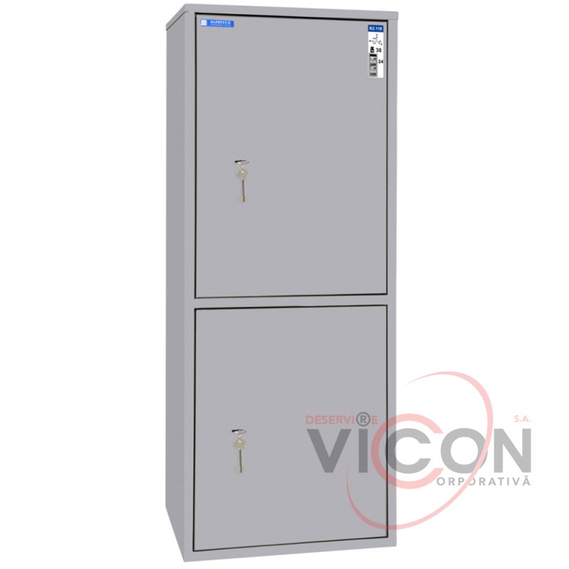 Сейфы серии В с толщиной металла двери 3 мм оборудованы парой стальных ригелей, полкой и кассой, ключевым сувальдным замком.