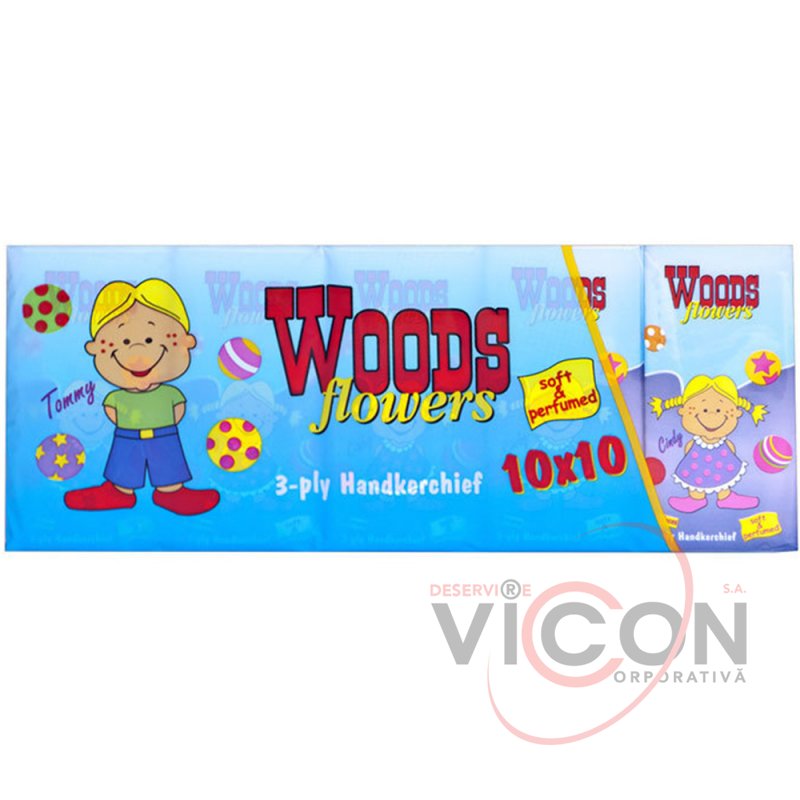 Салфетки носовые 3-х слойные, WOODS Flowers, 10 шт