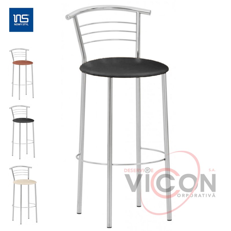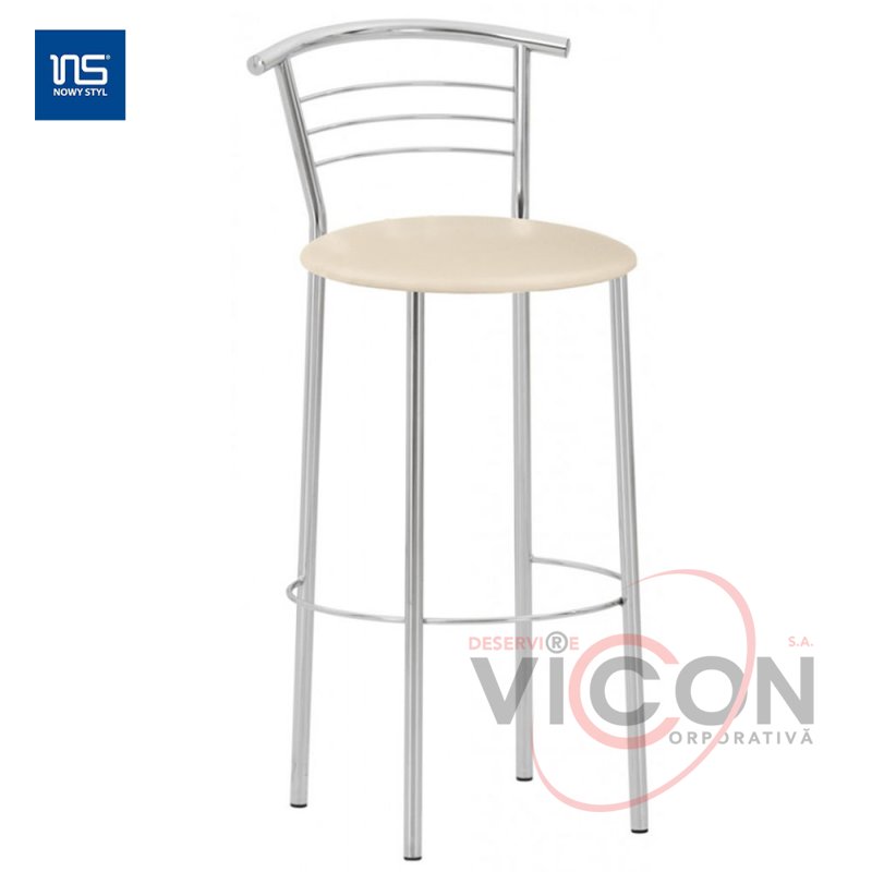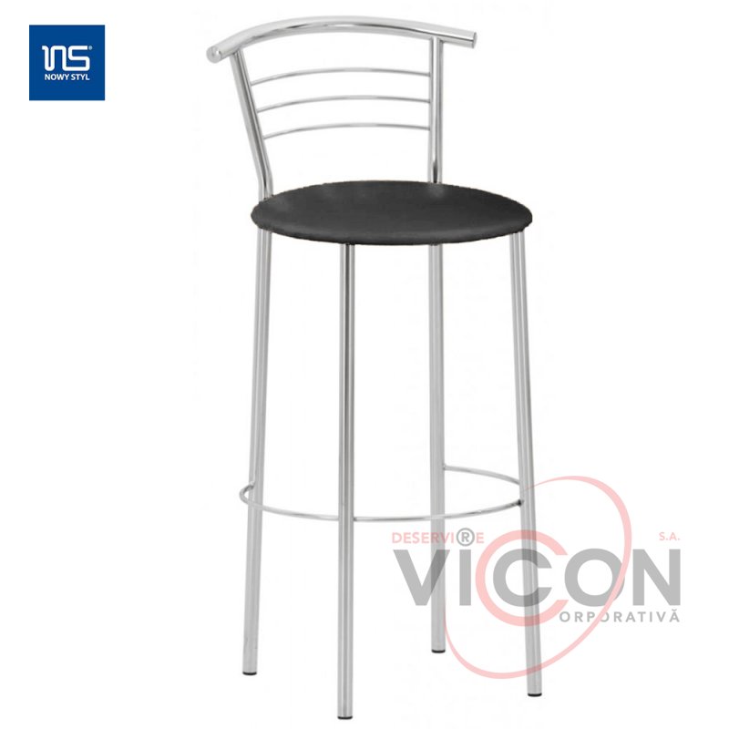 Прочный стул на хромированном металлокаркасе с мягким сиденьем.