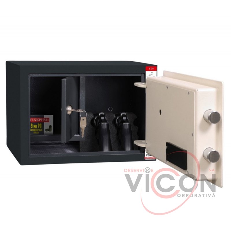 Сейфдля пистолетов TM Griffon серии S – оптимальный и надежный вариант для хранения пистолетов. Сейф имеет отдельный запираемый отсек для боеприпасов (трейзер) и ложемент под пистолет. Сейф подходит для хранения ценностей и документов. В перечне основных преимуществ этой продукции: толщина металлических дверей – 3 мм, сейфы оборудованы парой стальных вращающихся ригелей.