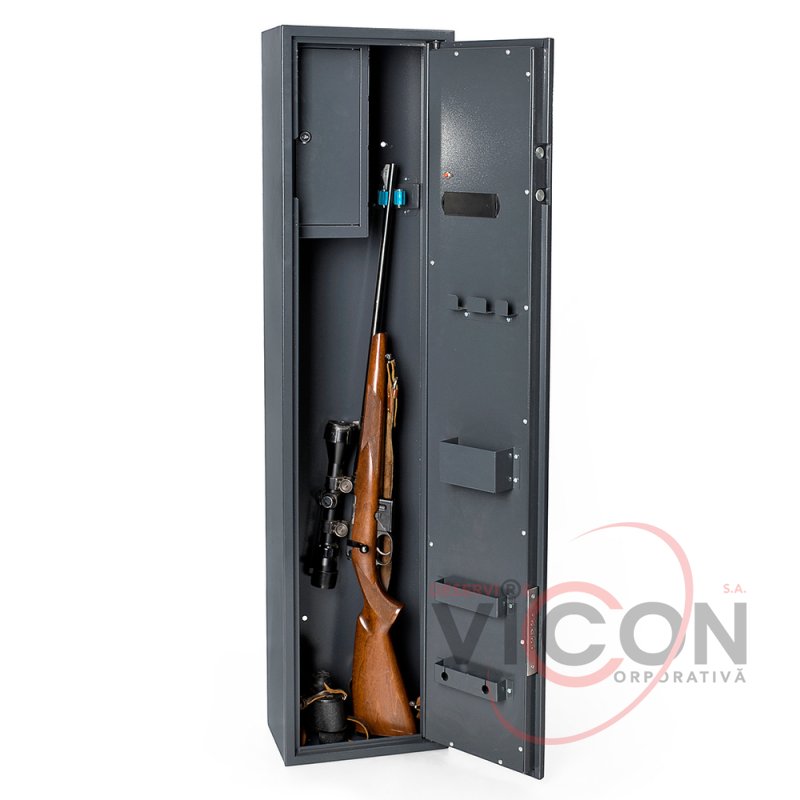 Сейф оружейный VERTEX с электронным кодовым замком предназначен для хранения одной единицы оружия длиной до 1270 мм. В сейфе расположен трейзер (касса) для хранения патронов и документов, ложемент, карманы для размещения средств по уходу за оружием или магазинов, держатели под два шомпола. Анкерные узлы позволяют закрепить сейф к стене и полу, обеспечивая надежную фиксацию на стационарном месте.