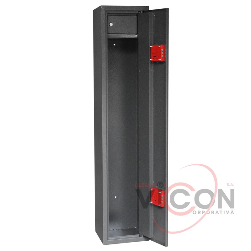 Сейф оружейный E-130K2 предназначен для хранения нарезного или гладкоствольного оружия длиной до 1120+ мм. В сейфе расположен трейзер (касса) для хранения патронов и документов, укомплектован двумя механическими замками. Анкерные узлы позволяют закрепить сейф к стене и полу, обеспечивая надежную фиксацию на стационарном месте.