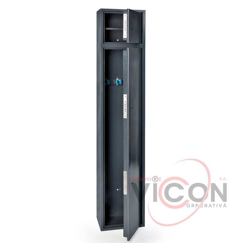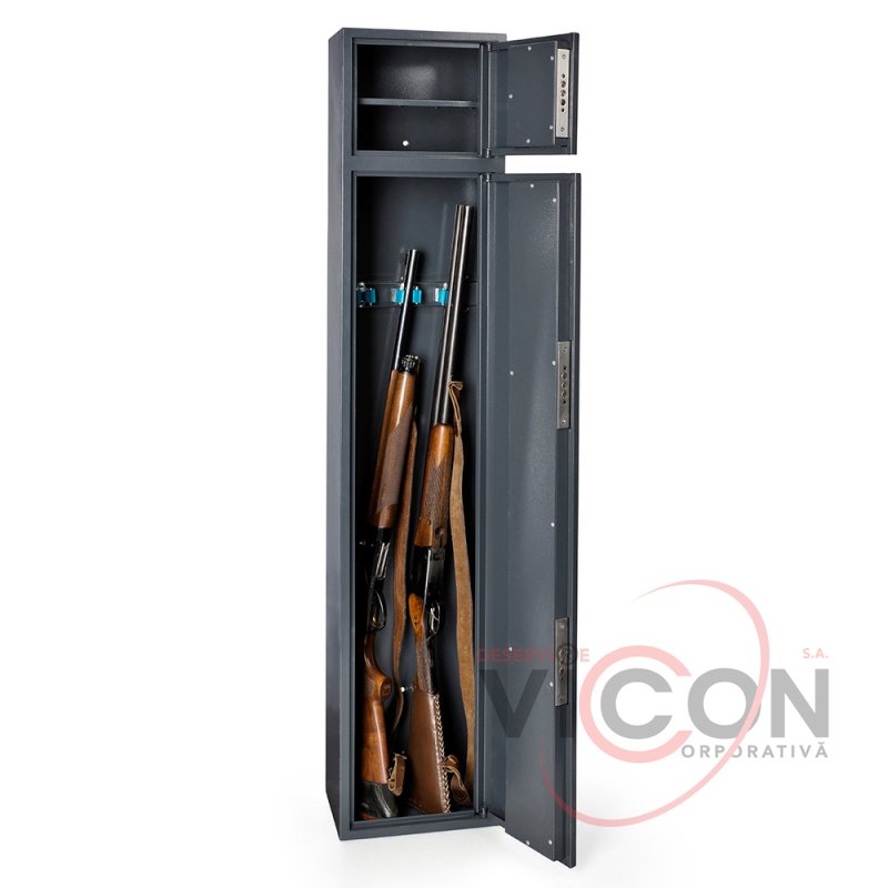 Сейф оружейный Barett с ключевым сейфовым замком предназначен для хранения трех единиц оружия длиной до 1220 мм. В сейфе есть дополнительная секция для хранения пистолетов, патронов и документов. Анкерные узлы позволяют закрепить сейф к стене и полу, обеспечивая надежную фиксацию на стационарном месте.