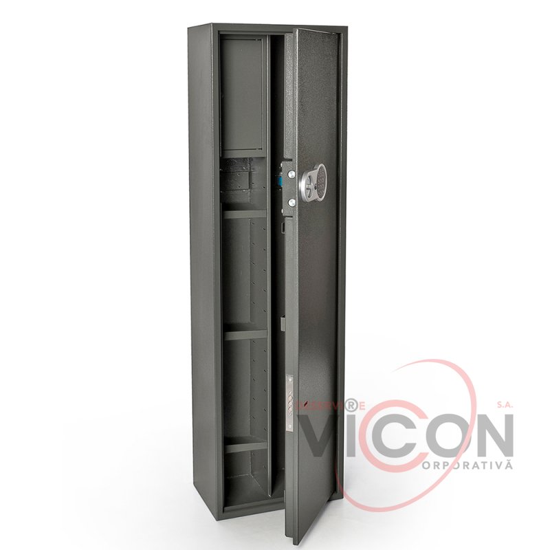 Сейф оружейный E-139 с ключевым и кодовым замками предназначен для хранения 3-х единиц оружия длиной до 1350 мм. В сейфе расположен трейзер (касса) для хранения патронов и документов, три полки, ложементы, карманы для размещения средств по уходу за оружием или магазинов, держатели под два шомпола. Анкерные узлы позволяют закрепить сейф к стене и полу, обеспечивая надежную фиксацию на стационарном месте.