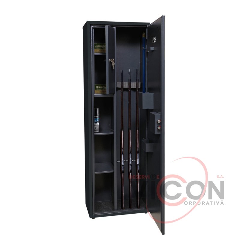 Сейф для ружья GLST.130.K HUNTER от компании Паритет-К предназначен для хранения оружия в количестве 4 единицы длиной до 1260 мм.