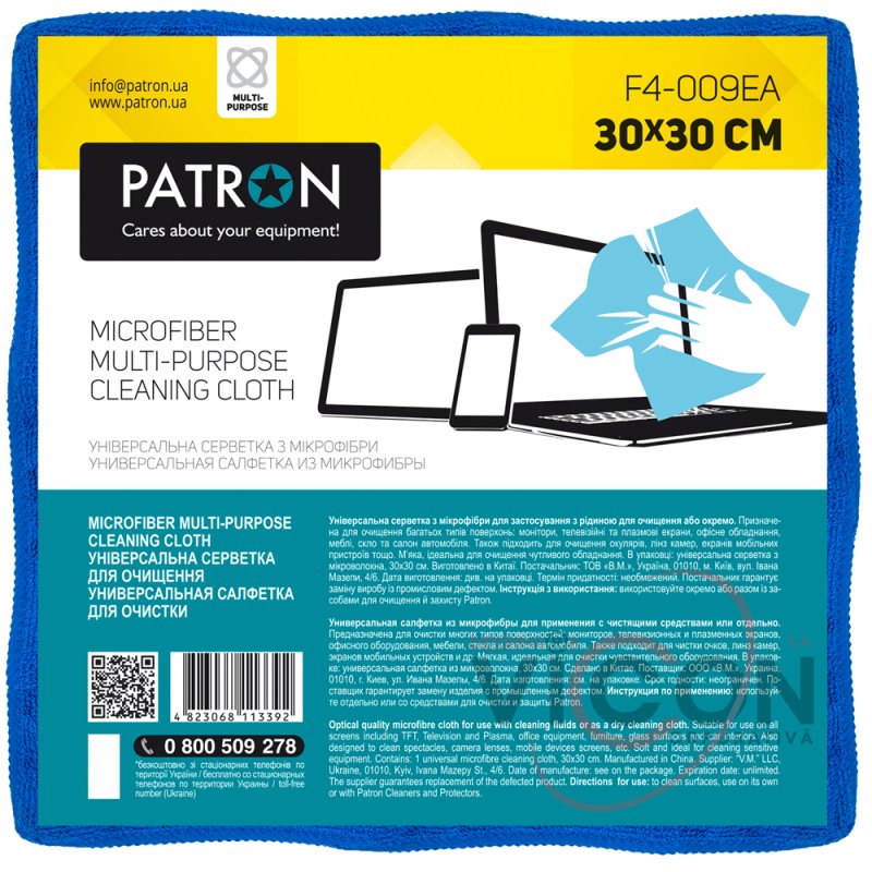 Универсальная салфетка Microfibre Cleaning PATRON F4-009EA 30x30 из микроволокна - для применения с чистящими средствами или отдельно. Она предназначена для чистки всех типов мониторов, телевизионных и плазменных экранов, оргтехники. Салфетка Patron также подходит для чистки очков, линз камер, экранов мобильных устройств. Мягкая, идеальная для очистки чувствительного оборудования.