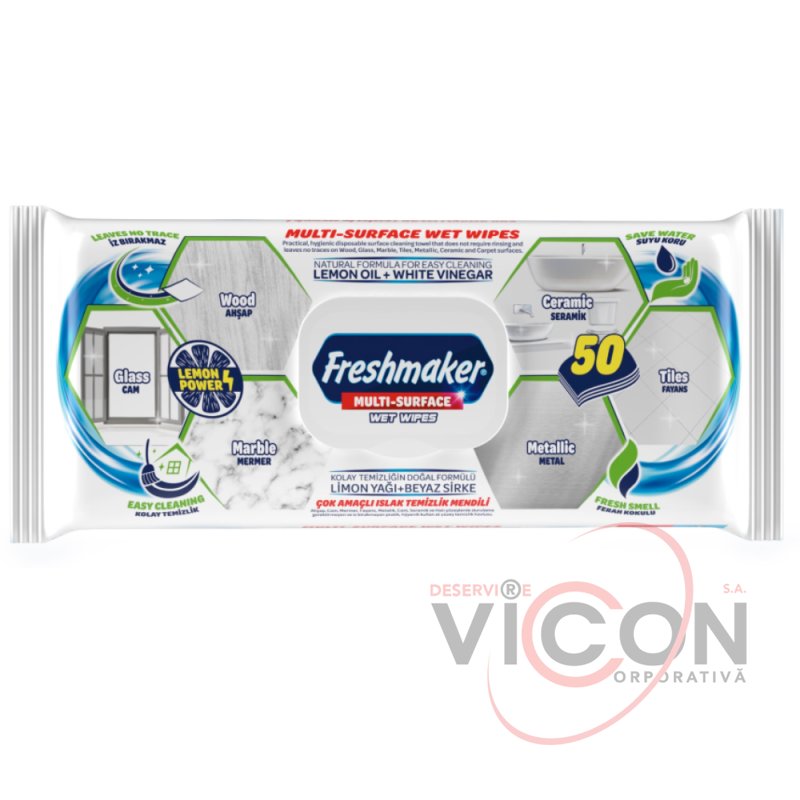 Универсальные влажные салфетки для очищения поверхностей Freshmaker, 50 шт.