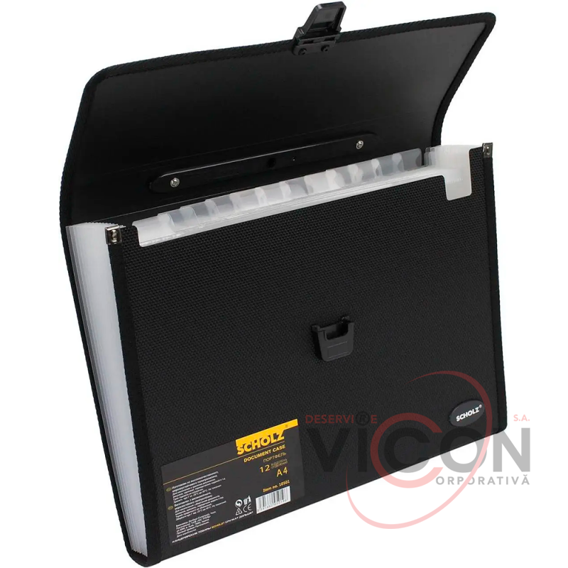 Портфель пластик А4, 12 отделений с регистр. черный, PP 1000мк, 10501 SCHOLZ