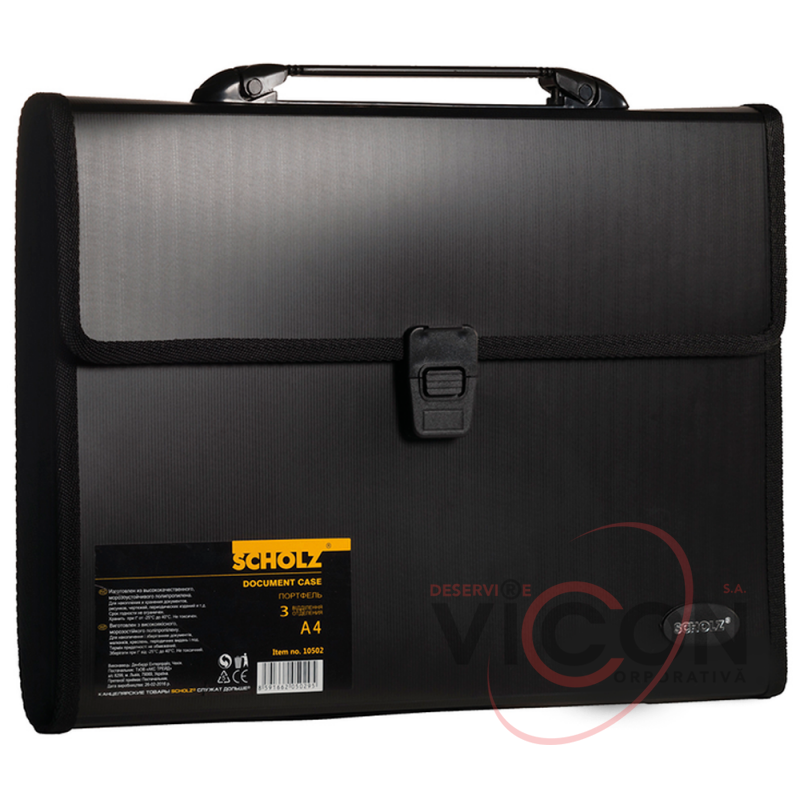 Черный портфель Scholz для документов формата A4 на три отделения.