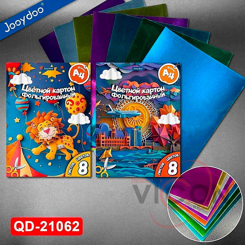 Набор цветной картон А4, фольгированный, 8 цветов, 8листов QD-21062
