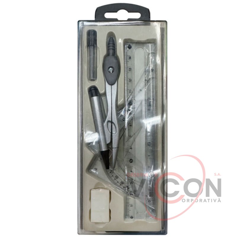Готовальня 6 предметов, с линейками, в пластиковом пенале