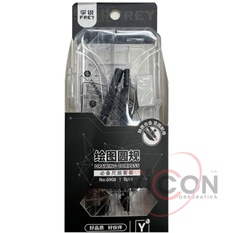 Готовальня 8 предметов, с линейками, в пластиковом пенале