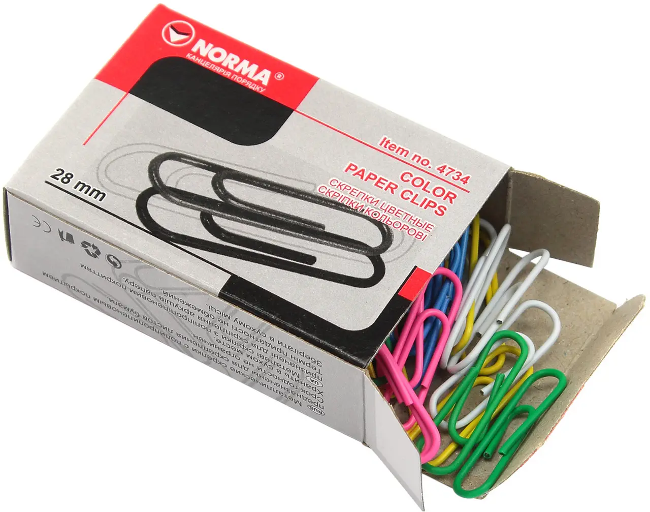 Скрепки цветные 28 мм, 100 шт, NORMA 4734