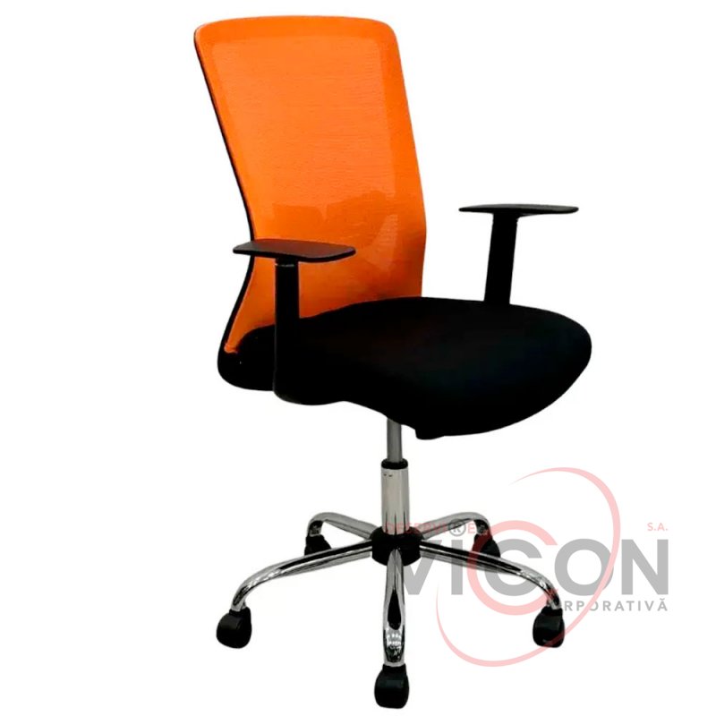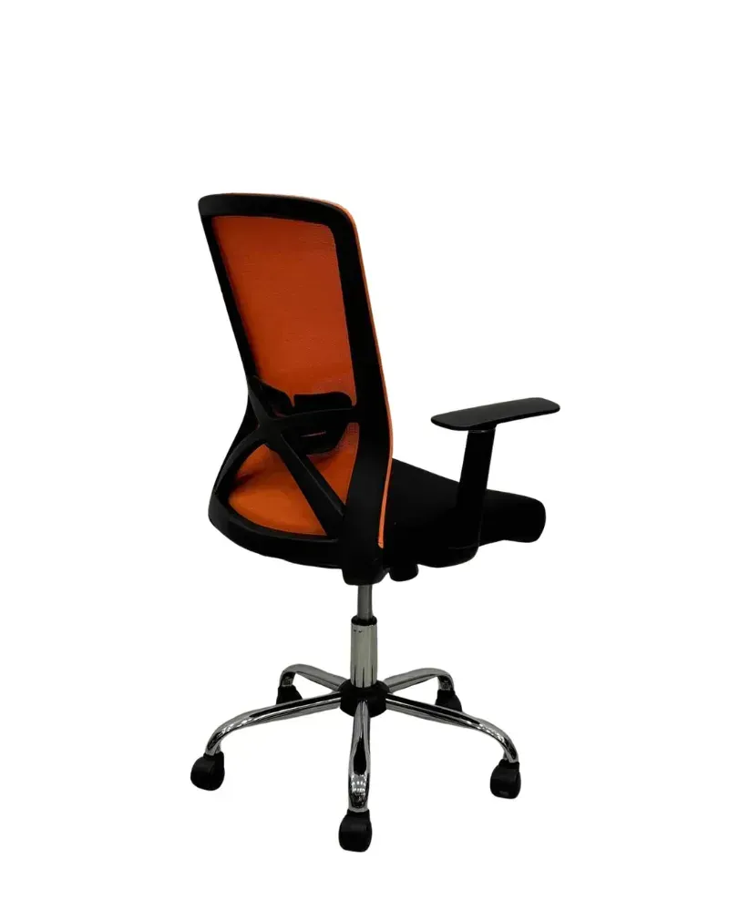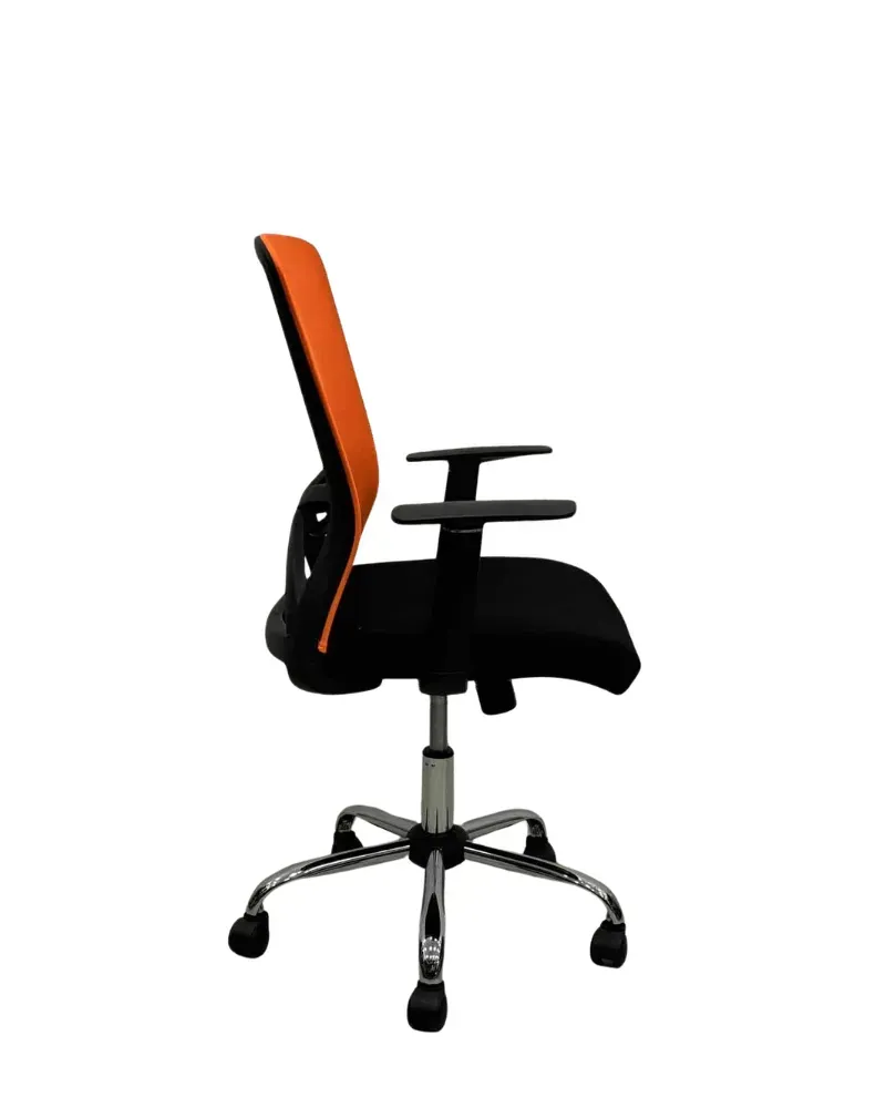 Это офисное кресло имеет поясничную поддержку, помогающую сохранить правильную осанку во время работы. Оснащено механизмом качания с возможностью фиксации в вертикальном положении. Спинка выполнена из сетки, которая способствует вентиляции и обеспечивает комфортную температуру. Сиденье обтянуто мягкой тканью, обеспечивающей максимальный комфорт во время работы. Установлена металлическая хромированная база