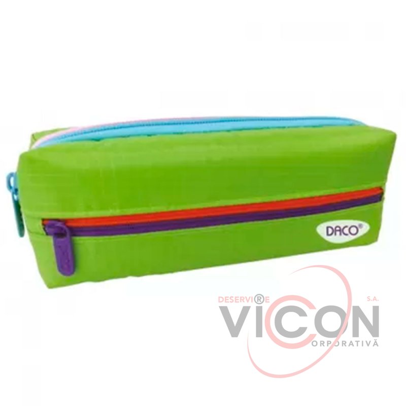 Penarul DACO cu 3 fermoare este fabricat dintr-un material rezistent, fermoar de calitate, cusături și finisaje atent realizate. Penarul este util, atât pentru preșcolari, școlari, cât și adolescenți, un mod ordonat de a depozita toate obiectele școlare necesare în compartimentele disponibile.