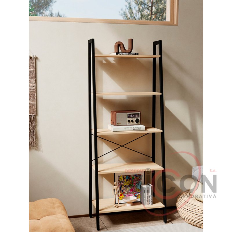Пять уровней стеллажа позволяют эффективно организовать хранение книг, декора, растений или личных вещей.