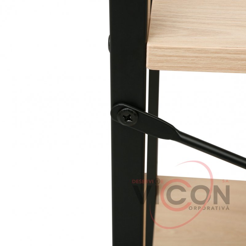 Столешница и полки выполнены из ламинированного ДСП толщиной 18 мм, с отделкой «Дуб M37/Black», которая создаёт гармоничное сочетание натуральных тонов и современных акцентов.