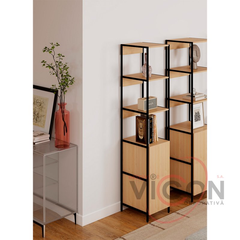 Узкие и хорошо сбалансированные полки позволяют разместить декоративные элементы, книги или полезные аксессуары для повседневной жизни. Размеры: ширина 33 см, глубина 41 см, высота 176 см делают стеллаж удобным для прихожих, гостиных, офисов или спален, не занимая много места.