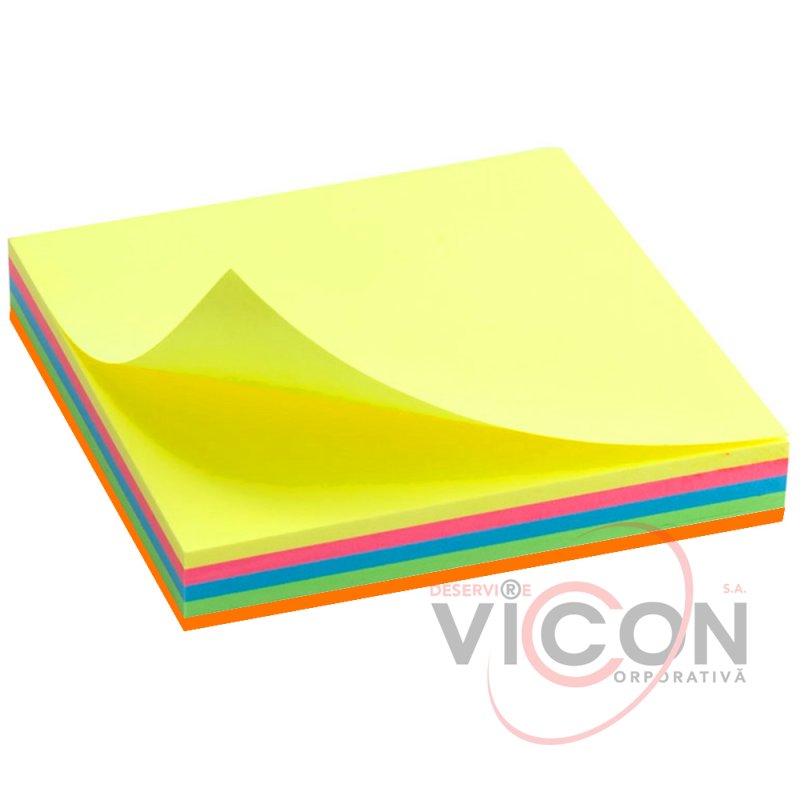 Стикеры для заметок с липким слоем, 75 x 75 mm, 100 листиков, 5 неоновых цвета, SchoolOffice