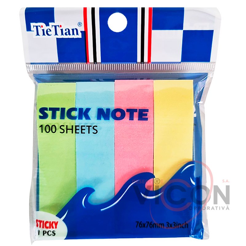 Стикеры-закладка 4 цвета х 100 бумажных литстков, 76 х 20 мм, S1-3