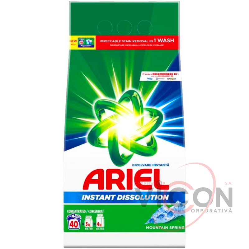 Теперь, благодаря своей концентрированной формуле, порошковый стиральный порошок Ariel Mountain Spring обеспечивает большую очищающую способность и отстирывает больше белья на килограмм, безупречно удаляя пятна за одну стирку и защищая цвета. Благодаря уникальной технологии мгновенного растворения порошок быстро растворяется при контакте с водой и глубоко проникает в волокна даже при стирке в холодной воде.
