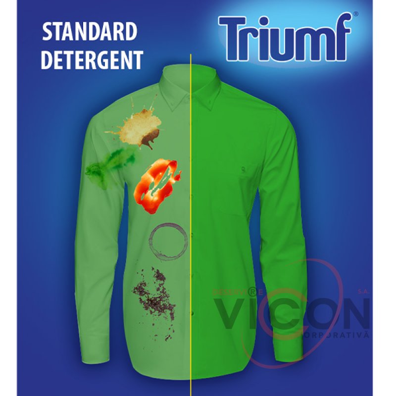 Triumf — немецкий бренд концентрированных средств для стирки. Продукция разработана на основе современных формул и высоких технологических стандартов. Изготавливается исключительно на сертифицированных заводах, с последующим подтверждением качества в независимых лабораториях. Инновационные технологии производства гарантируют не только высокую эффективность продукта, удобную упаковку, безопасность использования, но и заботу об окружающей среде.