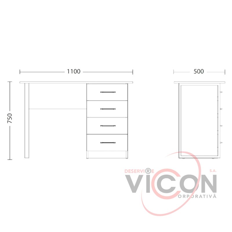 Он имеет одну тумбу с четырьмя выдвижными ящиками, в которых удобно хранить школьные принадлежности. Рабочая поверхность стола (размер: 1100 x 500 x 750) позволяет комфортно разместиться и учиться или играть в уютной домашней обстановке.