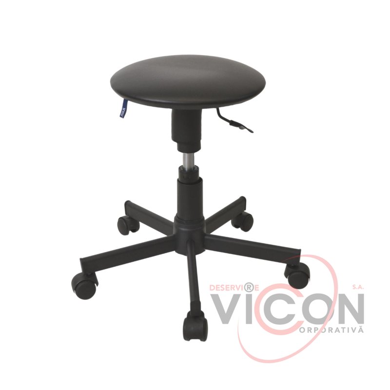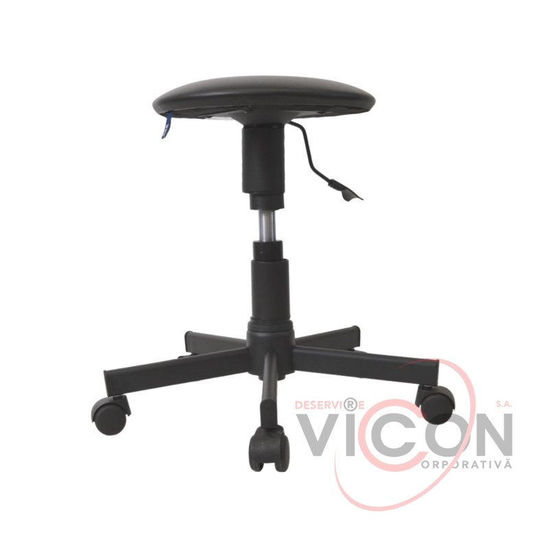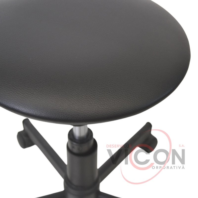 Сиденье диаметром 35 см изготовлено из фанеры и полиуретановой пены, обито эко-кожей.