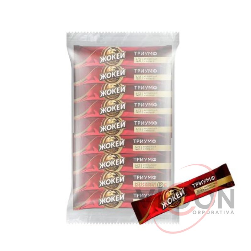 Кофе жокей триумф в стиках – это сублимированный продукт, который быстро заваривается кипятком. Сбансированный мягкий вкус. Удобная порционная упаковка из полимерной пленки с насечками для быстрого вскрытия.