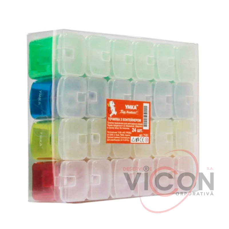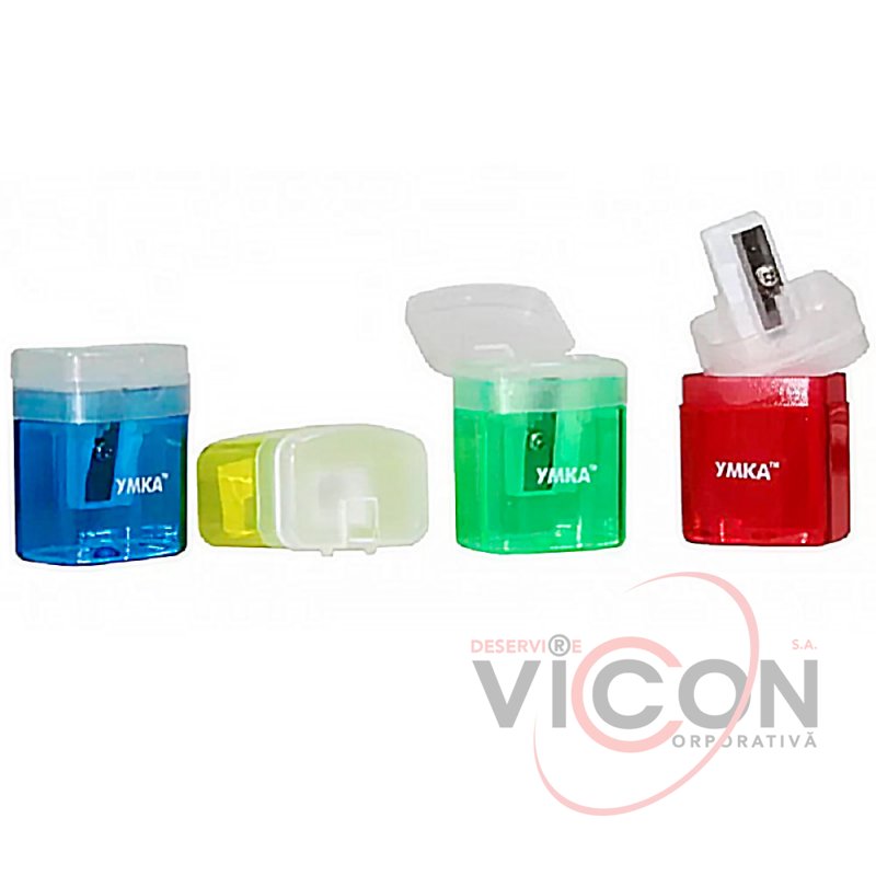 Точилка пластиковая, прямоугольная, 4 цвета ассорти, УМКА ТЧ61