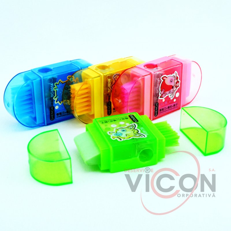 Точилка с контейнером, ластиком и щеточкой