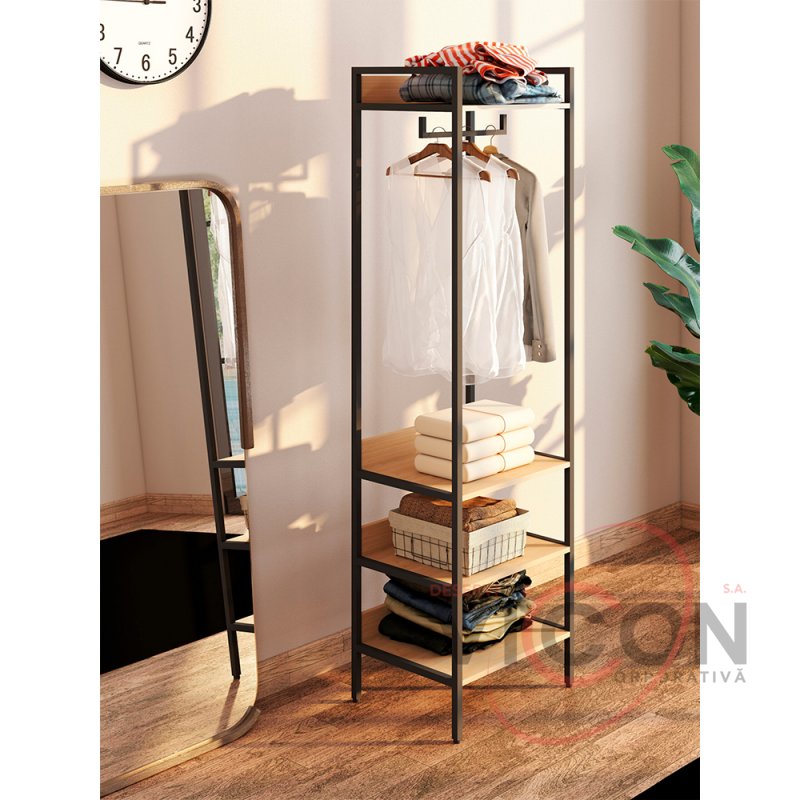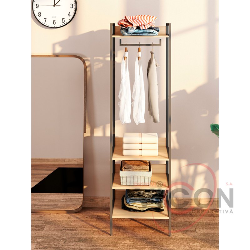 Четыре уровня позволяют аккуратно хранить вещи — от сложенной одежды до коробок, сумок или обуви. Размеры: 52 см ширина, 40 см глубина и 180 см высота делают изделие подходящим как для спален и гардеробных, так и для прихожих или коммерческих помещений.