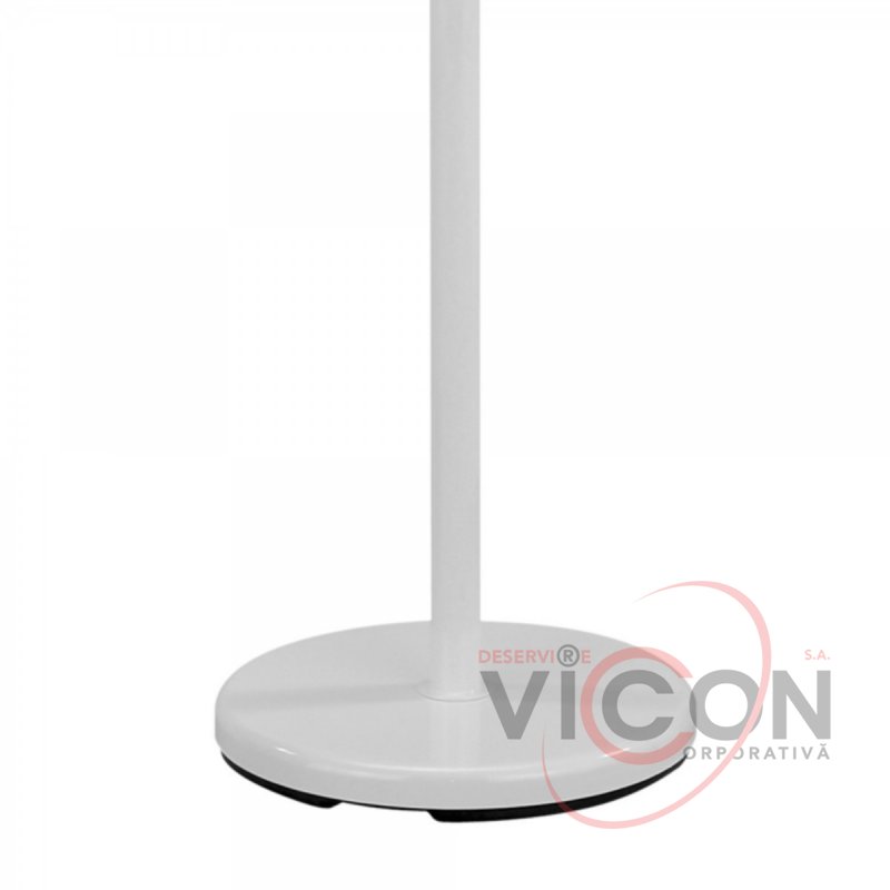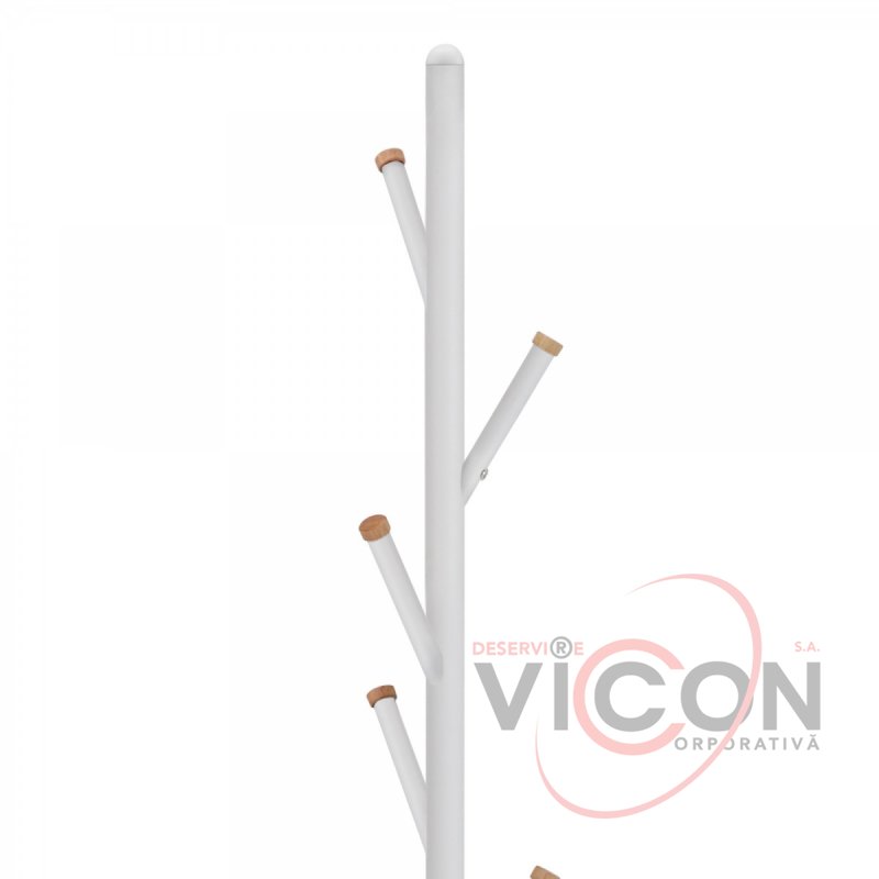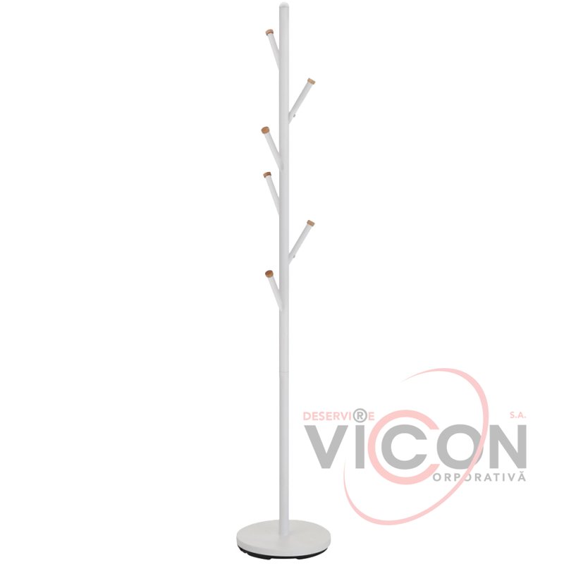 Оснащена 6 металлическими вешалками с элементами из лакированной древесины, круглое основание - из прочного пластика, покрытое крашеной металлической поверхностью.