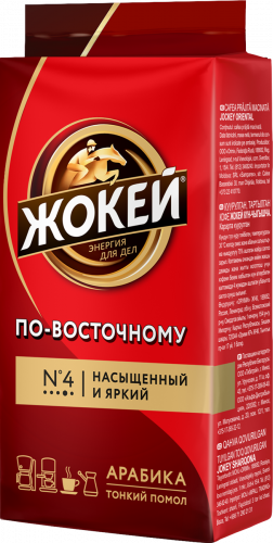 Уникальный бленд сортов арабики из Бразилии, Эфиопии и Индии. Жокей По-восточному обладает насыщенным выраженным вкусом с пряно-перечной нотой, легким мускатным послевкусием и шоколадным оттенком в аромате. Тонкий помол позволяет заваривать кофе прямо в чашке, залив его горячей водой.