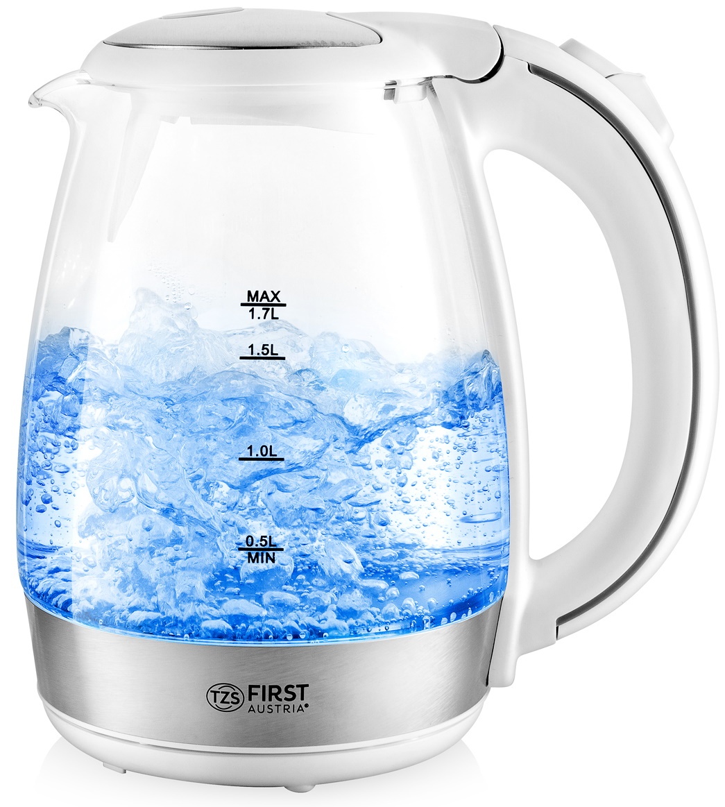 В прозрачном чайнике быстро и легко готовятся горячие напитки. Идеально оснащенный эргономичной ручкой, кухонный помощник надежно лежит в вашей руке, и вы не промахнетесь, когда наливаете, какой бы маленькой ни была чашка. Носик без капель и встроенный фильтр обеспечивают чистоту использования. Благодаря основанию с возможностью поворота на 360° прибор можно устанавливать без проводов со всех сторон. Одинаково удобен для правшей и левшей. Прозрачный чайник объемом 1,7 литра изготовлен из ударопрочного и термостойкого закаленного стекла, которое всегда остается без запаха и вкуса даже при регулярном использовании. Приятным дополнением является практичная функция освещения. Емкость [л]: 1,7